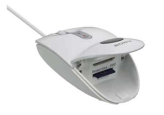 Способ подключения мышки к компьютеру по USB долгое время не давал покоя конструкторам компании Sony. "Компьютер есть, мышка есть, коннект тоже есть, а все равно чего-то не хватает" - повторяли изо дня в день лучшие умы японской корпорации. И вот, в один прекрасный день, чудо свершилось. Как все гениальное, чудо оказалось простым и оригинальным. Японские разработчики посчитав, что всего одна функция (курсор по экрану двигать) для мышек - это непростительная роскошь, встроили в нее картридер. Картридер имеет два слота и позволяет считывать карты форматов Memory stick, Мemory stick duo, Мemory stick PRO, Мemory stick PRO duo, SD, miniSD.